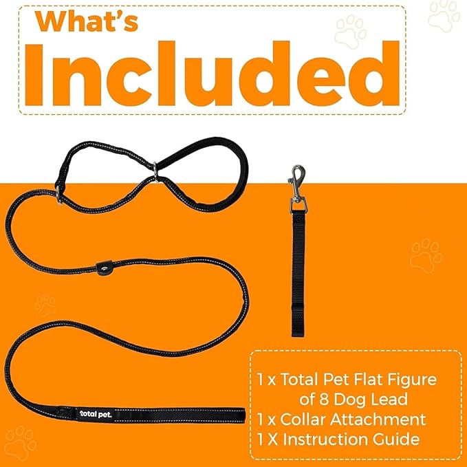 HR Flat Figure of 8 Dog Lead – Anti Pull Stop Dogs Pulling – Slip Leads Reflective with Padded Nose Support