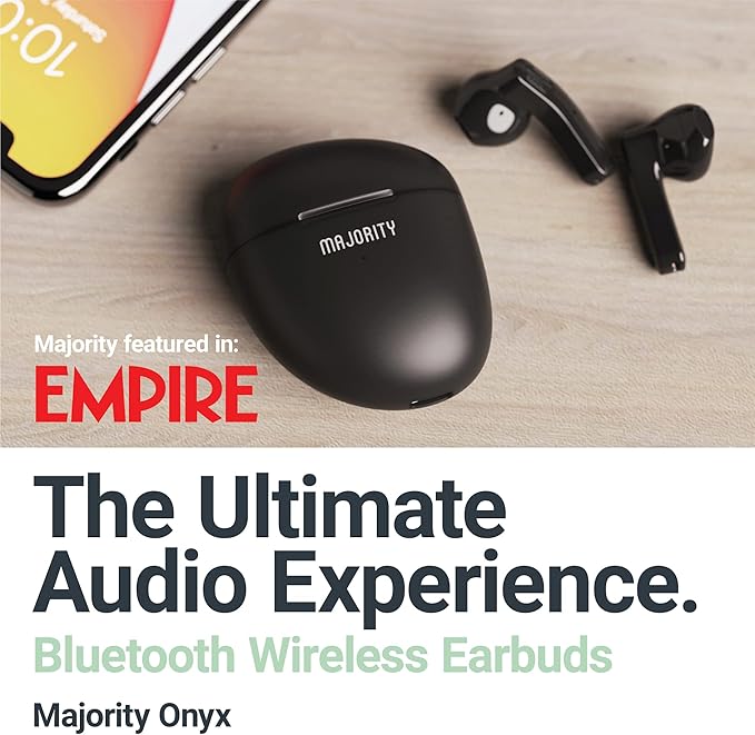 MAJORITY Onyx Wireless Earphones | Bluetooth Earbuds | Ideal for Workout, Gym, Running and Sport, Black