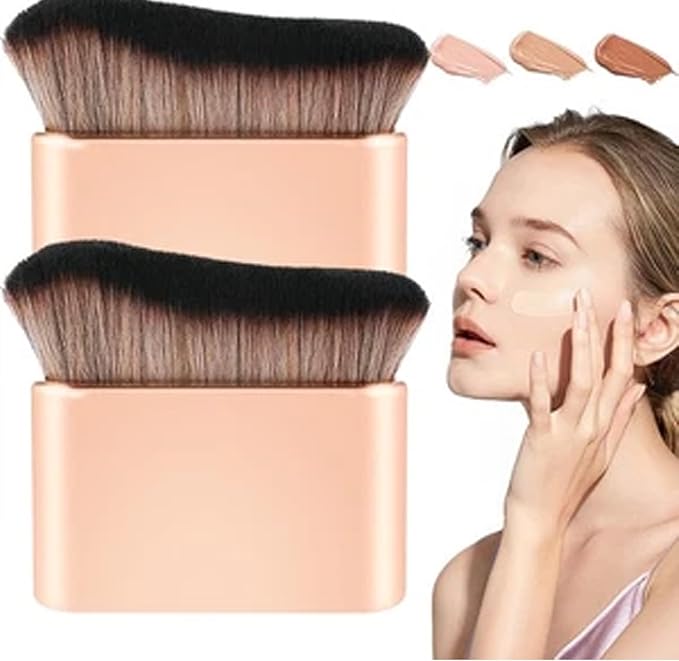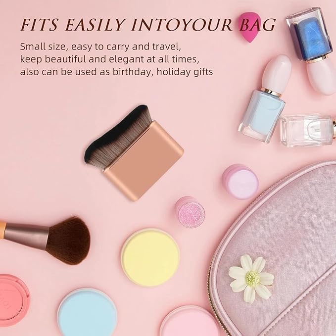 These soft bristle body makeup brushes are essential tools for achieving a flawless, airbrushed finish on your face and body. The extra-wide brush head provides excellent coverage, allowing you to apply foundation, sunscreen, tanning mousse, body lotion, and other liquid or powder products quickly and evenly. The ergonomic curved design follows the natural contours of your arms, chest, neck, legs, and other body areas, ensuring precise and comfortable application every time. Crafted with a durable ABS handle in an elegant rose gold finish, these brushes are impact-resistant and drop-resistant, built to withstand repeated use whether you’re a professional makeup artist or using them for daily beauty routines. The soft bristles blend seamlessly without streaking, creating a smooth, natural-looking result. Compact and lightweight at approximately 6.8 × 2 × 6.8 cm, these brushes are perfectly portable for travel, fitting easily into your makeup bag or purse. This set includes 2 makeup brushes, suitable for all skin types, making them versatile additions to any beauty collection.